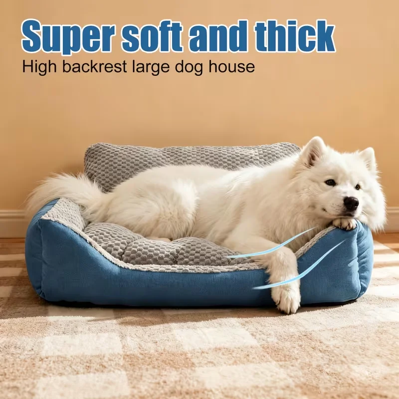 Luxurious Extra-Large Dog Bed, Orthopedic Support Pet Sofa Bed, Suitable for Medium to Large Dogs and Cats - Plaid Design with Soft Polyester Filling, Non-Slip Bottom, All-Season Dog Bed with Headrest Support, Ideal Choice fo